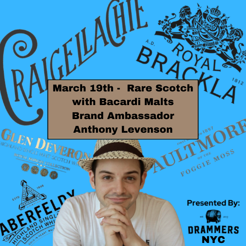 We’re delighted to invite you to a special tasting in NYC on March 19th with the Brand Ambassador for Craigellachie, Aberfeldi, Brackla and more (all the single malt Scotch distilleries owned by Bacardi). Their Brand Ambassador in the New York area is a longtime member and friend of the club — Anthony Levenson. He’ll be walking us through a range of special single malts, including:
