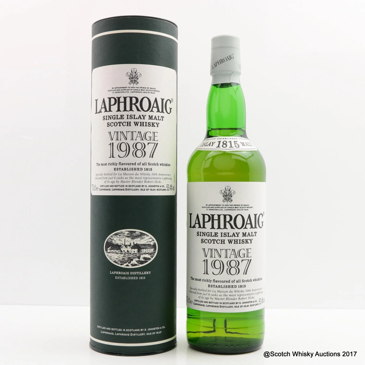 Vintage 1987 - Special 50th Anniv. Bottling for La Maison du Whisky (SET B). And this one is even more rare. La Maison du Whisky is one of our favorite whisky stores in the world, and to our delight several of their whisky experts attend our Paris meetings, so when we saw this special Laphroaig bottle made to celebrate LMDW's 50th anniversary, we knew it would be special and pounced. Selected from 6 casks "as the most representative Laphroaig of its age by Master Blender Robert Hicks". LMDW's 50th anniversary was in 2006, so presumably this is approx. a 19yo product, and from the reviews out there, these had to be some insanely special casks. No doubt that's why these bottles routinely well north $1,000/bottle. 53.4% abv.